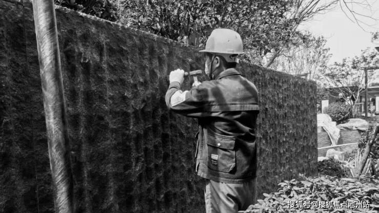 为保证整体效果呈现,项目施工过程大量使用人工切割打凿,自然面、叠水景石根据现场结构进行二次人工加工,强化硬质铺装的东方气韵。