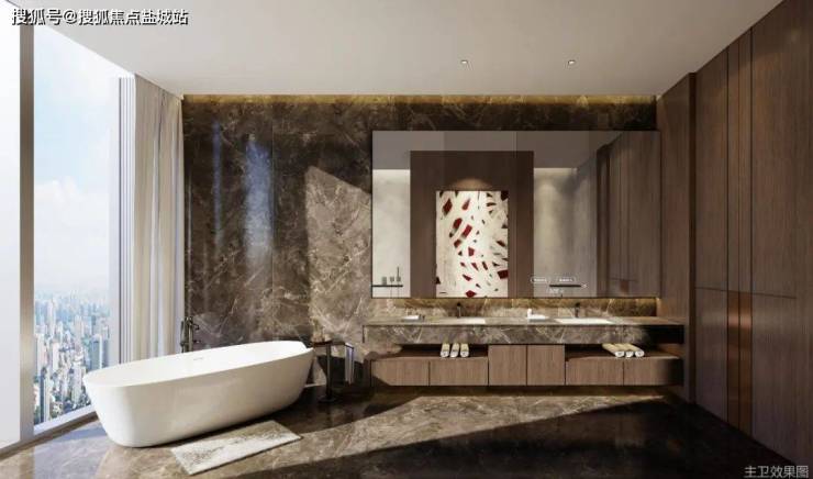 刻画格调,渗透每个细枝末微的营造,以考究工艺彰显卓越品质。暖灰调石材从地面延伸至墙围,凝练生活的温暖气息;干湿分离的规划方式,在开阔且独立的分区中注重使用的畅快体验。