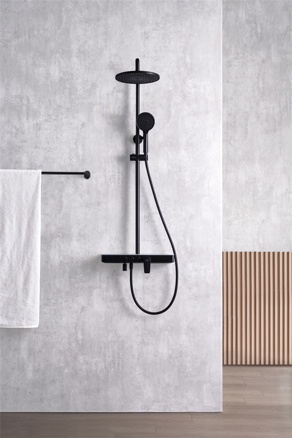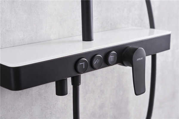 传统的花洒底部大部分是两根管道+一个调温手柄,便捷程度不高。箭牌卫浴明杆花洒AMG13S09U1/MB系列,将调温手柄与大置物平台结合,纤薄手柄设计,手感更舒适,轻抬转动,可实现多角度灵活调温,精准控温方式,为你带来更温暖的沐浴体验;而大置物台上可随手放置洗浴物品,时尚而不平庸的设计理念,无意中提升了花洒的档次,尽显高雅质感。其次是材质的颜色,自带高贵气质的哑黑,在灯光的映衬下,光亮顺滑,精益求精的细节处理,给人带来无止境的舒适触感,营造浪漫惬意的沐浴环境。