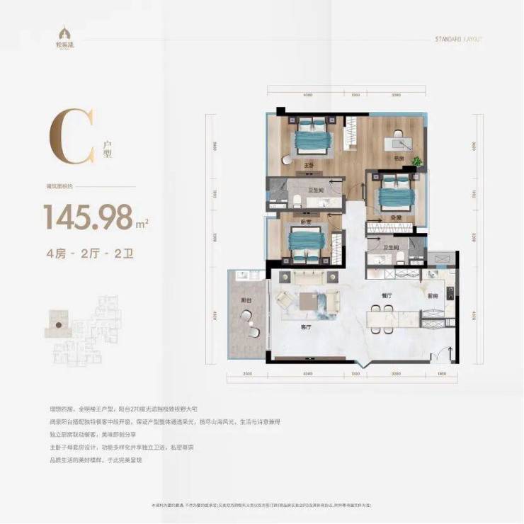 -116-146㎡三至四房:4.5米阔绰客厅,餐客独立分明,空间实用主义与仪式感并存。