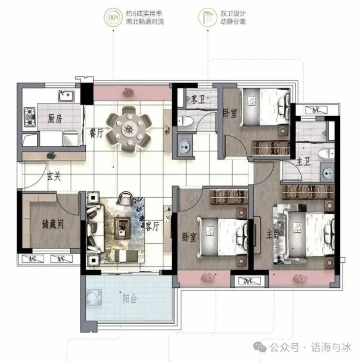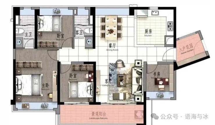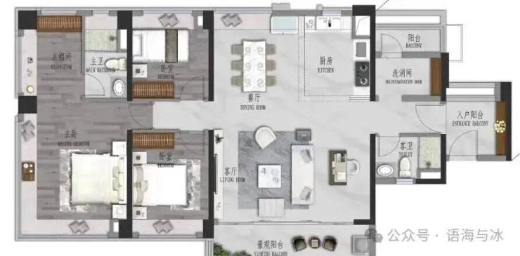 景观大阳台连通次卧--双套房设计,三代同堂更从容