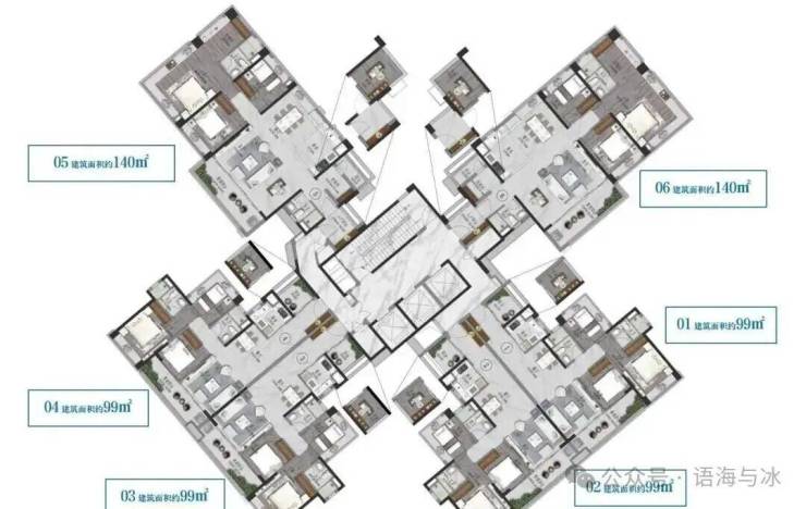项目采用了环抱式高层布局,围绕中心园林