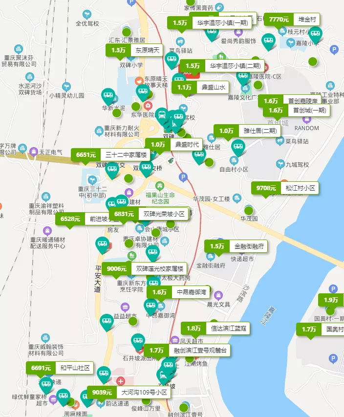 所以,从安居客的房价地图看,石井坡-双碑沿线的房价区间在6500-18000元/㎡不等,这个跨度可以说是相当大的了,但结合前文来看,也在情理之中。