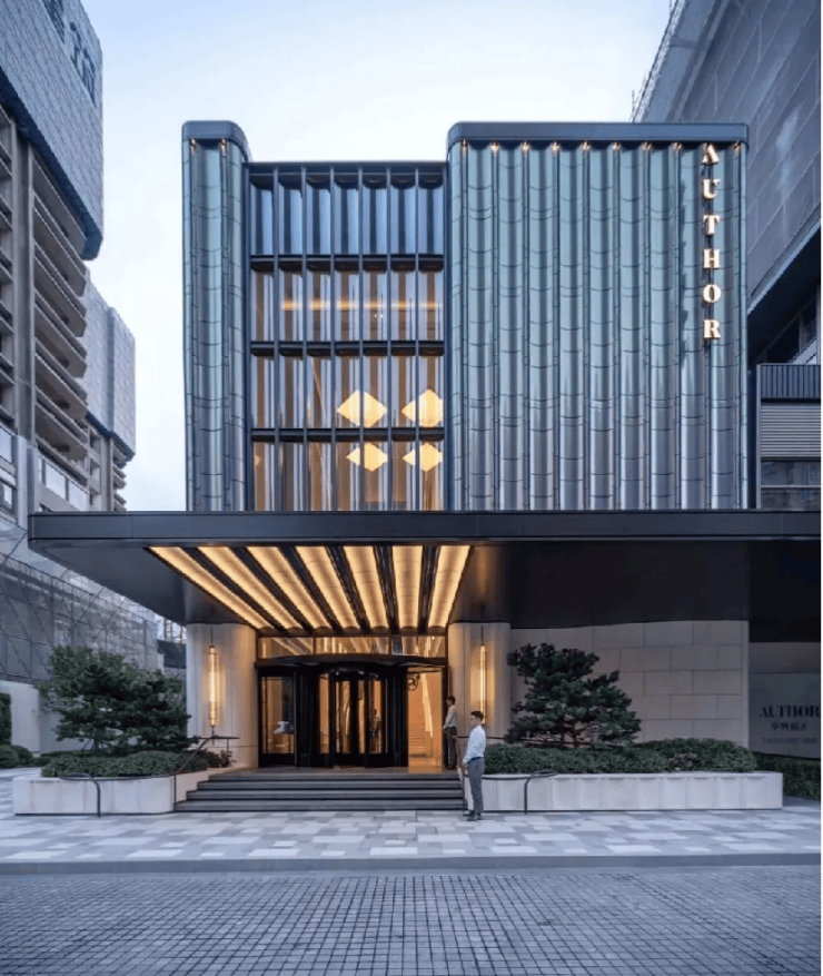 对标国际众多地标豪宅,「中興傲舍」打造的新海派建筑地标住宅相当亮眼!强调古典的三段式构图,以珍珠蓝为核心,搭配香槟金、摩登红进行住宅色彩体现,采用Art Deco竖向线条、弧形工艺设计精雕细琢,展现出项目非凡的艺术造诣。