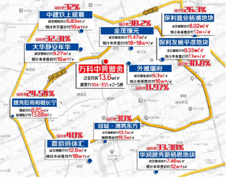 聚焦市中心北区来看,中环的大宁、杨浦滨江土拍楼板价破8w+/㎡,未来新房售价将达到12-16w+/㎡;虹口临平路、四川北路板块新房未来售价或将达到16-18w+/㎡!
