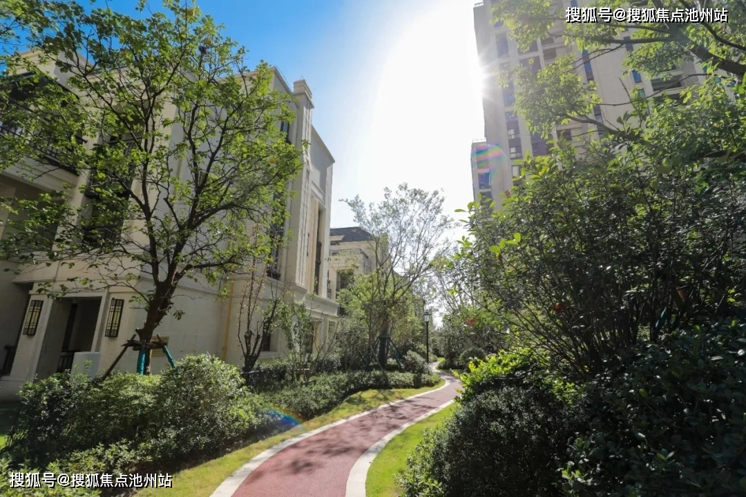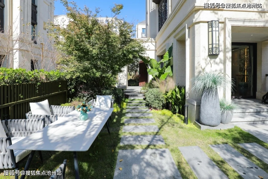 一层的庭前绿地,对于家庭应该是欢乐时光开启的地方。吃完饭,带孩子在这里骑骑车,喂喂鱼,浇点花,是相当不错的场景画面。