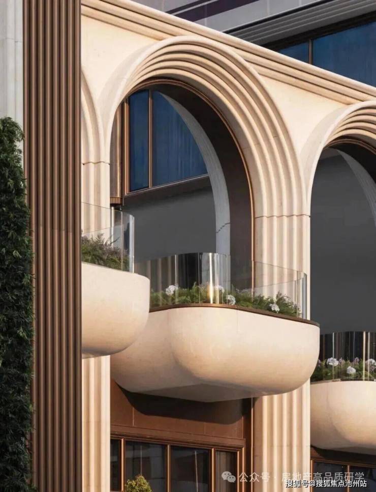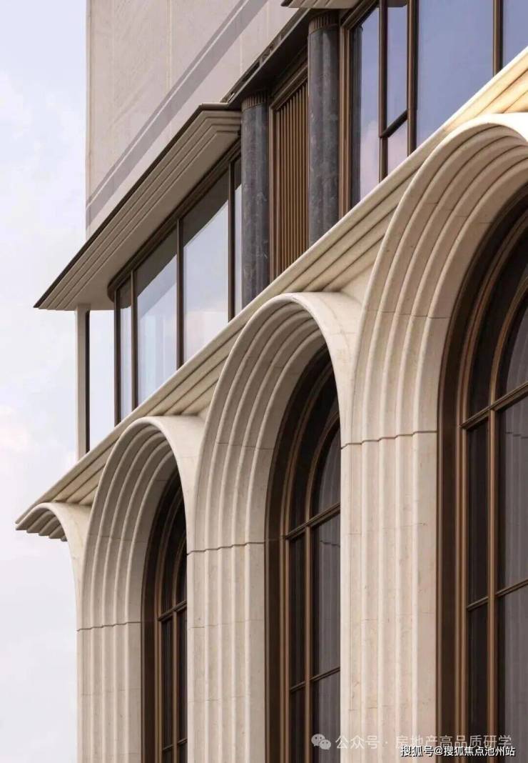 26个近十二米通高的拱券阵列于舒展的沿街界面中,宏大的尺度赋予庄重之感。斯卡帕式的叠退立面,于光影间演绎优雅美学,让回家成为一场风景漫步。