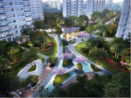 在公共空间,天境通过对温州地理和文脉的充分了解之上,将“江心屿”浓缩在约4万方园林里,通过中央水景、龙小湖IP乐园等进行搭配,带来了一座兼具极具体验参与感的园林。