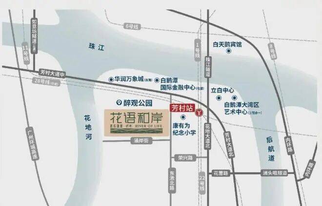 景观资源:项目北侧是花地河,直线距离约50米,仅仅隔了一条花海街和绿道。
