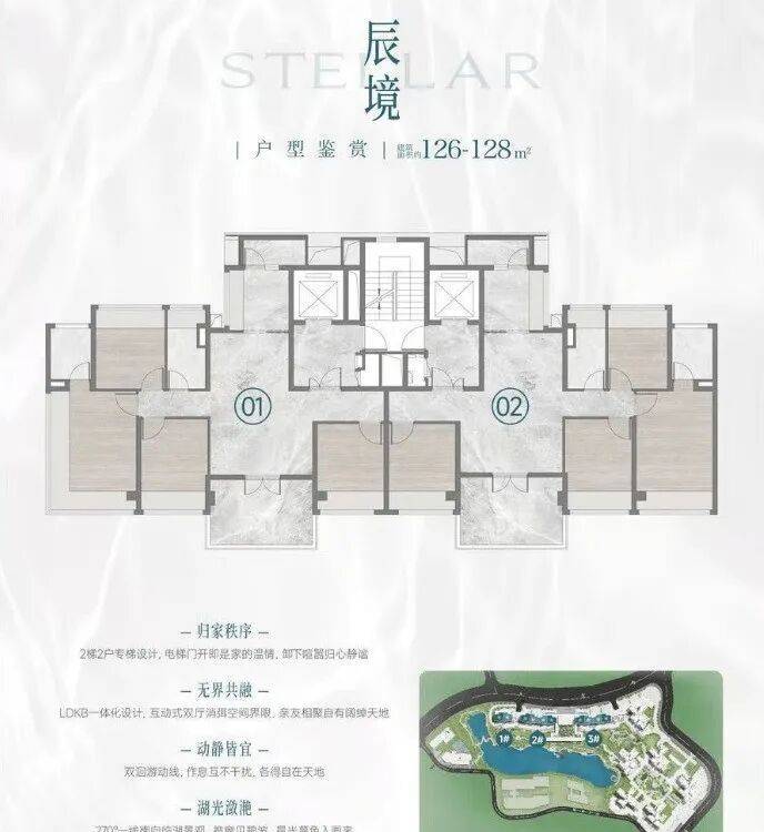 板楼(17F):2T2户型,建面约125-127㎡
