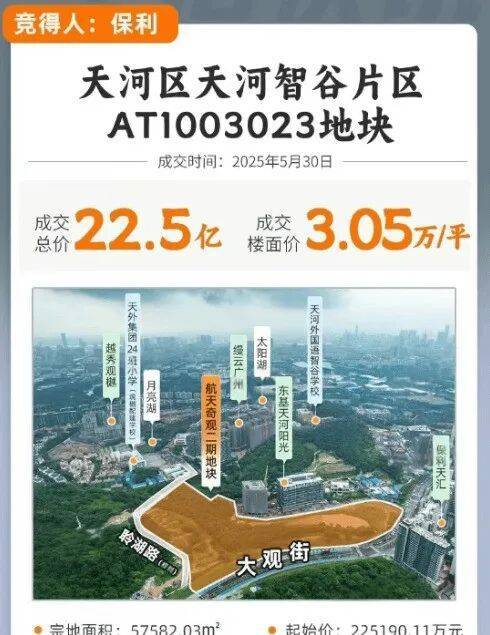 2025年5月30日,保利发展以约22.5亿总价拿下广州航天奇观二期地块,楼面价达到3.05万/平方米。这一举动不仅标志着保利今年在广州的首次拿地行动,也象征着其对市场趋势的重要引领作用。位于世界大观板块内的航天奇观二期项目,凭借优越的自然景观资源和城市界面改善潜力,吸引了众多改善客群的目光。