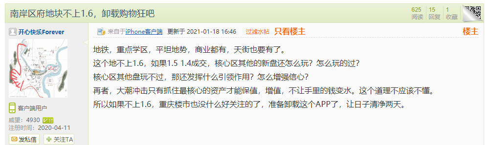 更别说附近未来还有龙湖的天街项目来添砖加瓦,难怪虽高达10400元/㎡的起拍价,但在某论坛上有网友调侃道:要上16000元/㎡。