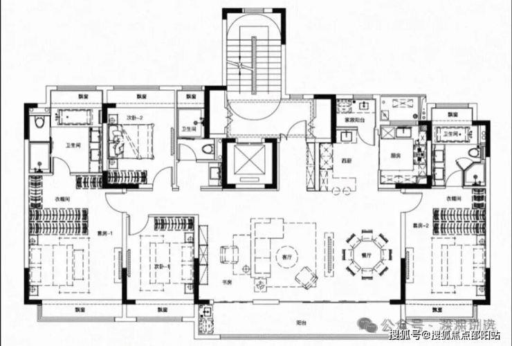 户型:约260㎡4房4卫,专梯入户