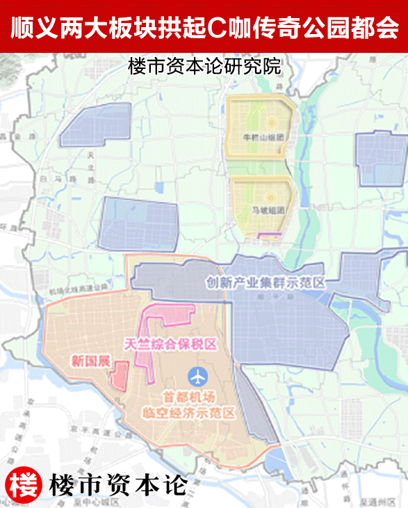 这就是北京自贸区板块(空港)和顺义城区板块,两大块板联手拱起的新一代楼市C咖“公园都会”。