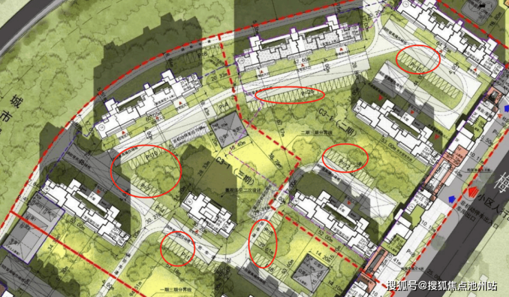 从平面图来看,小区地面停车位基本分布在二期和三期,几乎每栋楼下都有部分地面车位,也是相当诧异,人车不分流都是多年前的小区设计了,竟然出现在2025年的新盘规划上。武汉目前有部分楼盘做地上车位仅仅是为了满足规划需求,后期可能取消地上车位,做成人车分流的,不过那样车位配比就降低了,但该盘未来是如何规划目前还不得而知。
