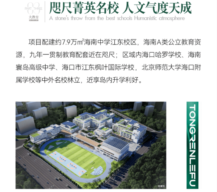 1. 核心区位:地处海口江东新区 CBD 南片区,该区域作为海南自贸港集中展示区,汇聚了多家世界 500 强企业,区域发展潜力巨大。项目与海南中学江东校区仅一路之隔,是学校 2 公里范围内的唯一住宅新项目,教育优势极为突出。