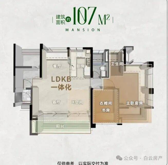 LDKB一体化布局,约5.2米客厅开间,X空间随心享