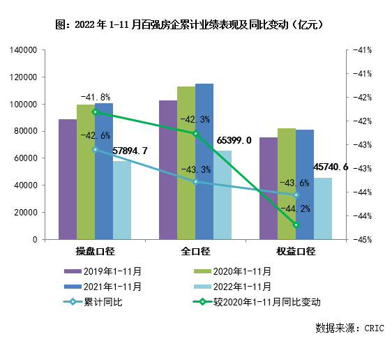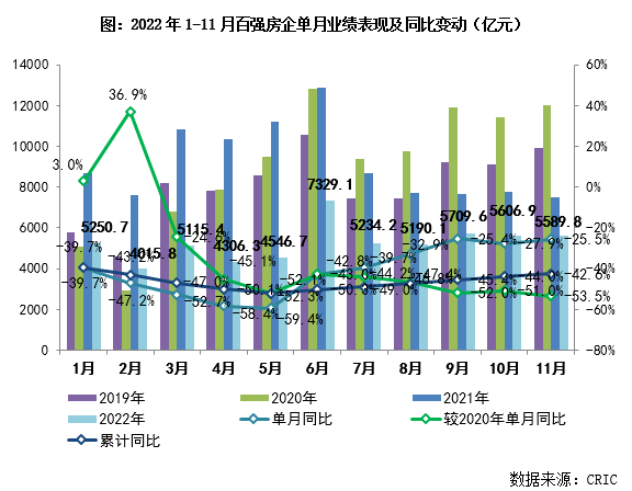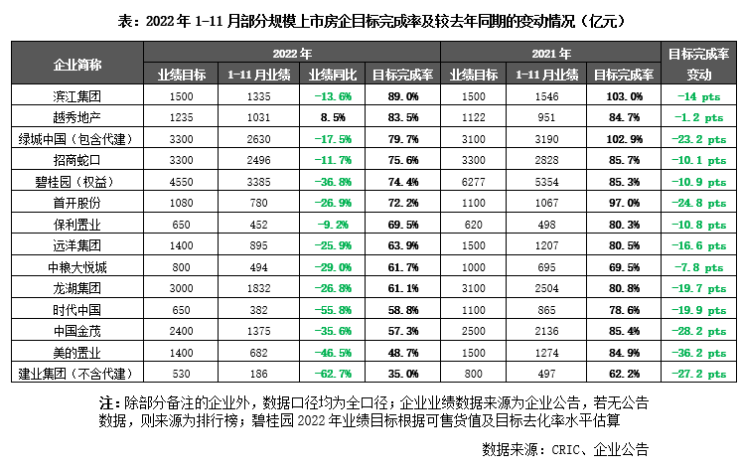 焦点财经讯 11月30日,克而瑞地产研究院发布《2022年1-11月中国房地产企业销售TOP100排行榜》。