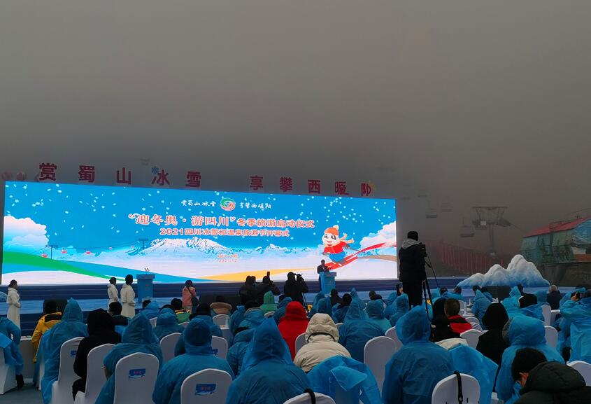 人民网成都12月10日电 (刘海天)窗含西岭千秋雪,是诗圣杜甫的千秋名句;心向川中百温泉,是金牌导游的热情推介。小雨浇不冷人们对蜀山冰雪的热情,大雾锁不住游客对攀西暖阳的向往。12月10日,“迎冬奥·游四川”冬季旅游启动仪式、2021四川冰雪和温泉旅游节开幕式在成都大邑西岭雪山举行,由此全面拉开了四川冬季旅游系列活动帷幕。
