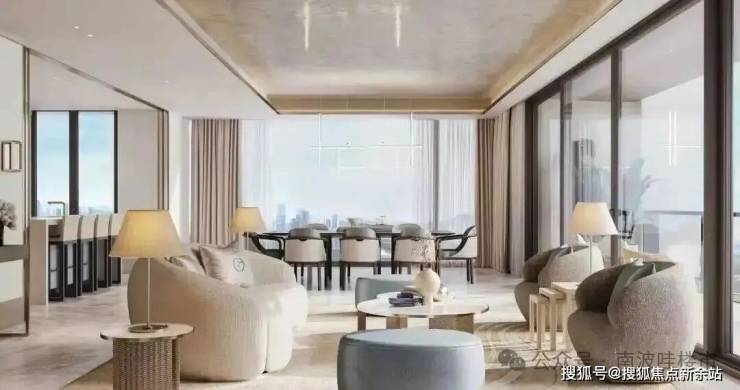 像TOA,在其设计的约303平户型中,实现了非常彻底的动静分区,且动区横厅LKD占了整屋过半面积,叠加主阳台直面深圳湾海景,通透感与景观张力一整个拉满,当自然景观和优雅的建筑风格和谐地融为一体时,置身其中感受到的是低奢静谧。