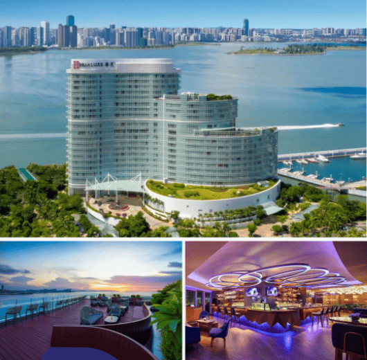 海口华彩华邑酒店(即将升级为海口华彩洲际酒店),酒店共有377间客房及套房,840平米无柱豪华宴会厅、7个多功能会议室、5间汇聚东西方美食的海景餐厅及酒廊,以及位于11层的海景健身房等配套。