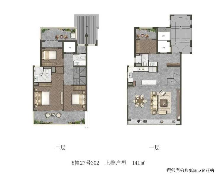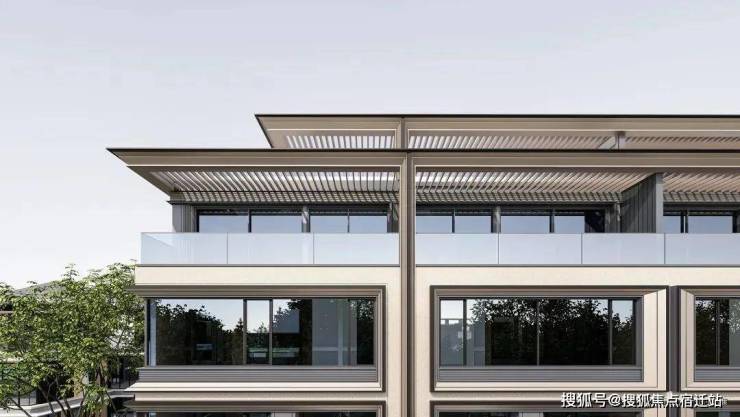 建筑立面,汲取广富林文化精髓再造东方屋宇,采用渐暖色石材、银灰色及香槟色铝板和涂料的组合,带来厚重与轻盈的平衡,在彰显文化豪宅的同时又包含国际风骨,整体呈现诗意东方之美。
