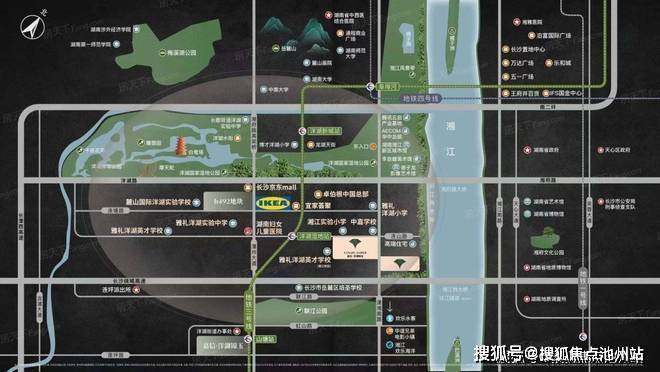 周边直线3km范围内有4个地铁站(洋湖湿地、山塘、洋湖新城、大王山),轨道交通发达,距离最近的地铁站是洋湖湿地。