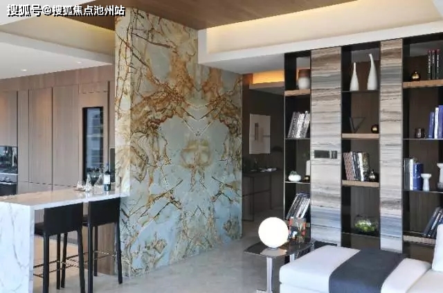 为了保证石材艺术化的表现力,梵悦•108挑选的数种石材,在全球范围内都是单一产地出品,以矿脉为单位,进行整批次采购。入户之前,所有的石材必须在结晶之前严格打磨7遍,方能呈现水晶般的光泽度,原本散布在石材里的金沙也因此更加璀璨。