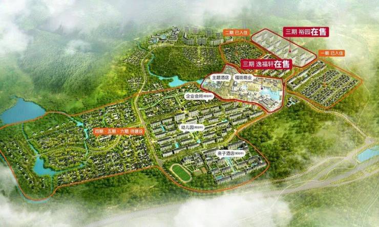 以中华福文化为理念,构建中国式美好度假生活系统。通过产品美学、生活美学、生命美学的全维度建构,致献南山千年福地唯一旅居小镇,目前一期、二期已售罄,三期在售。
