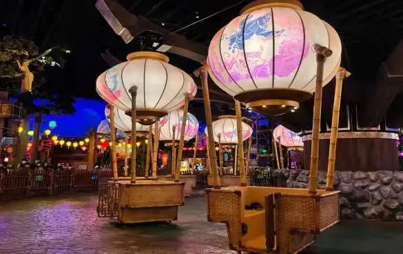 功夫熊猫盖世之地属于北京环球影城独有,灯影传奇也是国内首创的设备。这一设备较大的特点是中国传统文化跟现代游乐的相互融合,设备既有传统建筑的元素,也有传统灯笼的造型,灯笼上还有经典的皮影戏元素;通过这些,把传统文化以一种动态的体验呈现给游客。