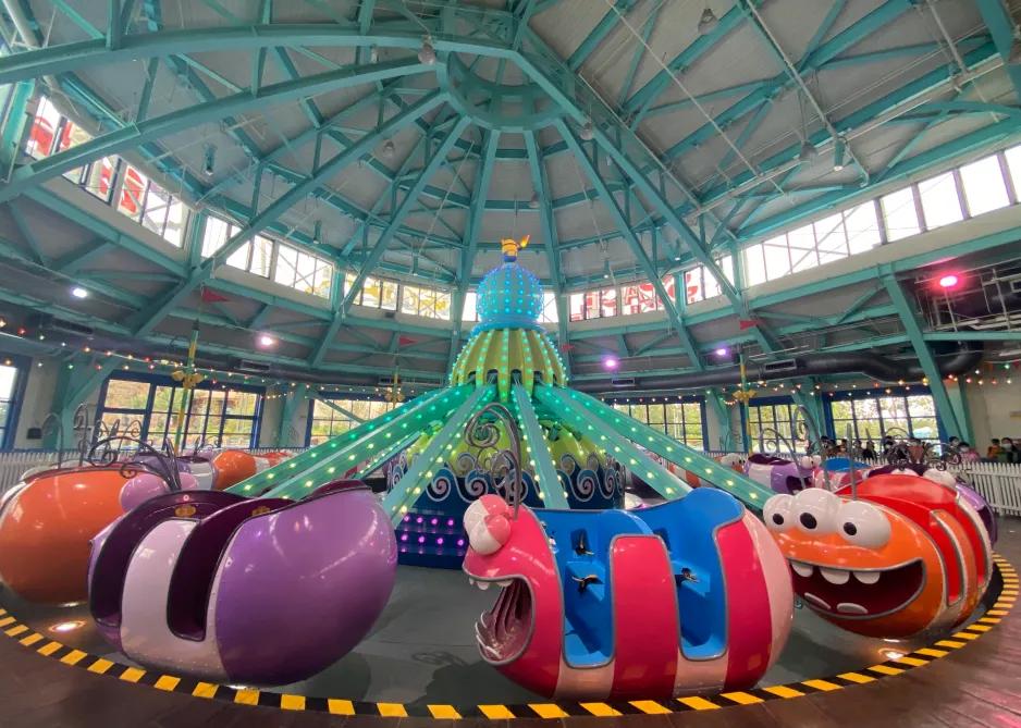 超萌漩漩涡则是国内排名前列64座大型自控飞机类项目,也是全世界较大、乘坐人数最多的自控飞机类项目之一。作为孩童最热爱小黄人区域,设备的外观打造上工程师们颇费心思,为了还原动漫角色Q萌活泼的形象,模具的制作上采取了3D打印技术,使造型更逼真立体。同时,我们安全束缚装置进行了超过50万次的反复测试,令设备使用更安全可靠。