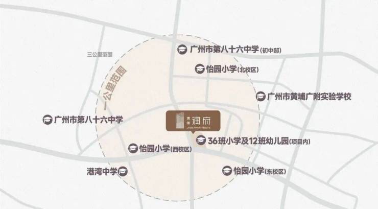 一公里内聚集多所优质学校,怡园小学、广大附中黄埔实验学校、广州市八十六中学等。