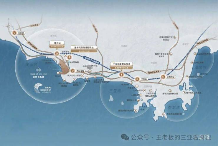 三乐轻轨崖州湾站直线距离约3公里
