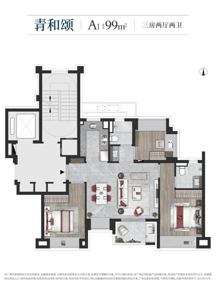 3.5南向大开间|客餐厅一体化格局|北次卧双飘窗设计