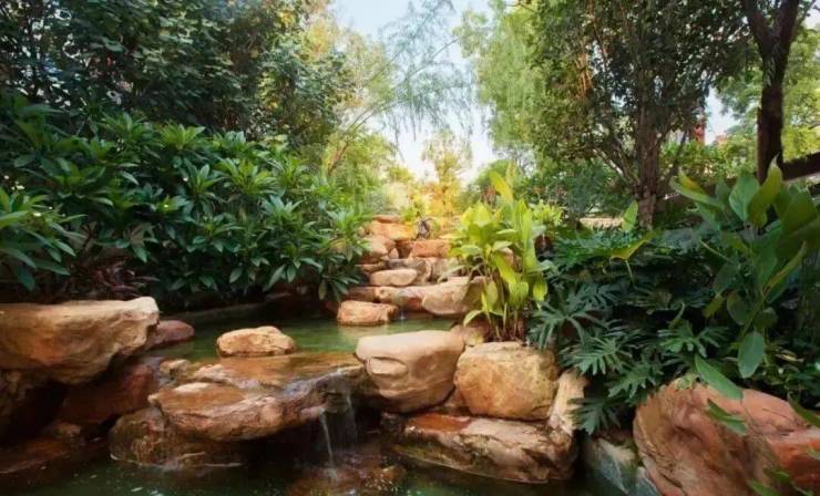 园区匠造山水园林:黄蜡石叠瀑溪流、全冠移植香樟、300年古茶花树,四季皆景。