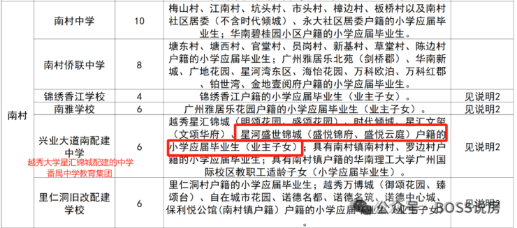 中学: 按照2025年的学区划分,初中划分到越秀大学星汇锦城配建的中学 ,同样是番禺中学教育集团的成员校,现在命名为:广东番禺中学教育集团兴南中学