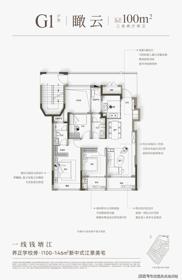 建筑面积约100平方米的户型为想要留在主城的刚需家庭提供了极佳的选择。三开间朝南,设计方正。主卧约有18平方米,转角全明飘窗,从而实现全屋通透的自由,让风景与阳光,遍布家中的每一隅。