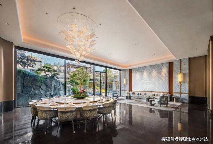 还有一个别的楼盘难以超越的是建面约2000方下沉式会所,有恒温泳池、健身房、私宴厅、茶室等功能空间,全都环绕中央水庭而设,风景旖旎。