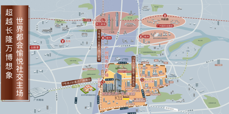 自带K11 Select:广州第二座K11 Select(约8万㎡),2025年三季度开业,定位“多元智能亲子购物乐园”,自然采光+不规则中庭设计,填补万博高端亲子商业空白。