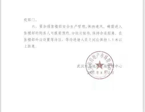 焦点财经讯 耿宸斐 2021年8月3日,武汉市住房保障和房屋管理局发布通知:即日起,暂停全市新建商品房线下销售活动。