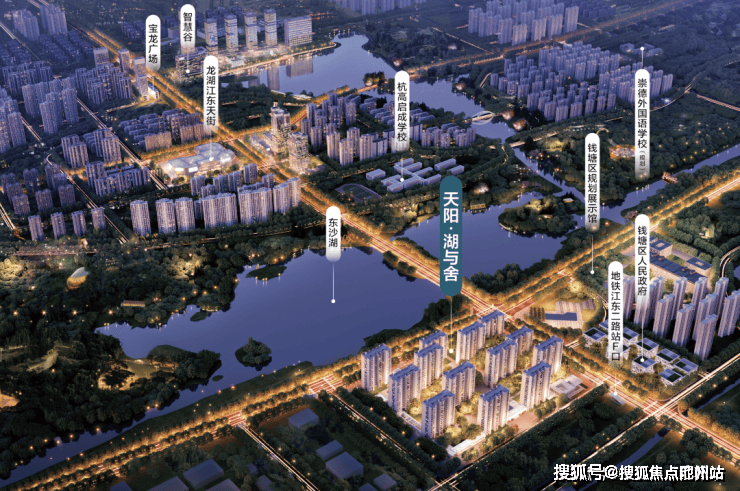 地理位置:位于钱塘区江东新城核心区,江东一路与青六北路交叉口,南向直面 450 亩东沙湖公园,西侧紧邻钱塘区规划展览馆。