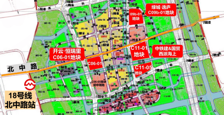 从区位来看,浦开北蔡项目位于楔形绿地之内,最靠近18号线北中路站,这是比较大的优势;地块南侧是规划的初中用地。