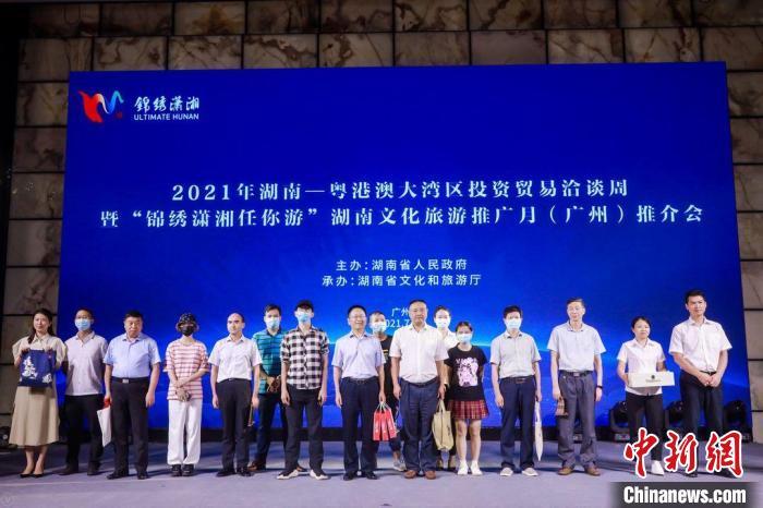 湖南省文旅厅供图中新网广州7月29日电 (记者 程景伟)由湖南省人民政府主办、湖南省文化和旅游厅承办的2021年湖南-粤港澳大湾区投资贸易洽谈周暨“锦绣潇湘任你游”湖南文化旅游推广月(广州)推介活动,29日在广州举行,旨在增强湖南文化旅游在粤港澳大湾区重要客源市场的影响力,提升“锦绣潇湘”品牌知名度。