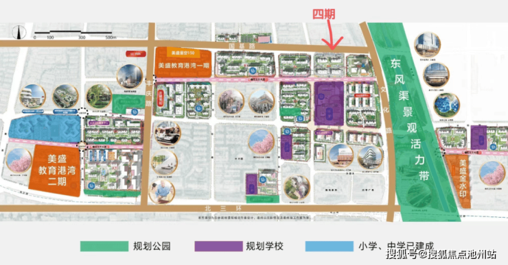 四公园:东风渠滨河绿地、北三环社区休闲公园、文化路商业活力公园、庙李儿童体育公园