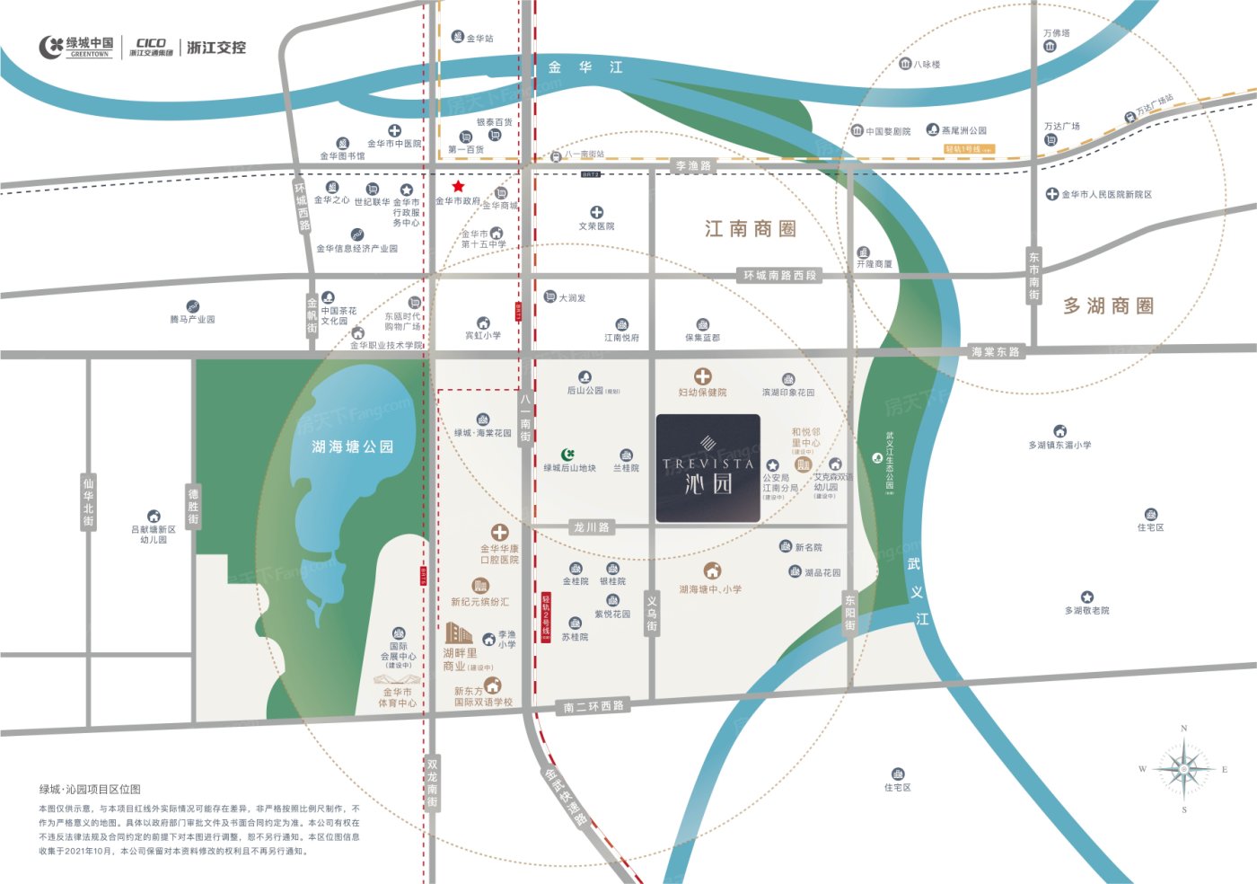 【齐全配套 便捷栖居】商业——新纪元缤纷汇、大有天地(在建中)、和悦邻里广场(在建中)等商业集群生态——湖海塘公园、武义江沿江绿化带主题公园(在建中)、后山公园(规划中)教育——金华新东方双语学校、湖海塘中小学、李渔幼儿园等(入学政策以政府部门政策为准)医疗——金华市妇幼保健院等交通——金武快速路、八一街改造拓宽、BRT1号线、金武轨道交通等