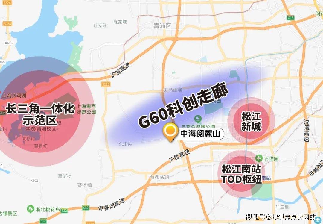 中海阅麓山位于佘山南,周边包括五大新城中的松江新城、G60科创走廊、长三角一体化示范区、松江南站TOD四大重量级规划环绕。