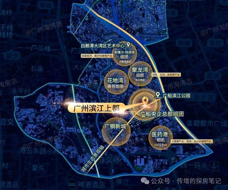 作为广州城市文化中轴与城市景观轴的交汇点,以白鹅潭CBD、一江两岸四城和新TOD枢纽规划为起点,打造立足广州、辐射粤港澳大湾区、面向世界的国际化滨江活力区,集商务、商业、生活、休闲、文化体验为一体的多元化城市综合体。