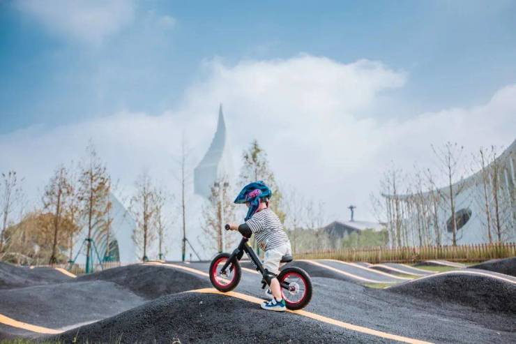 孩子可体验飞鹰单车,骑行在浪漫的樱花大道上,穿越梦幻樱花海。