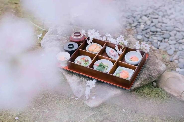一家人在樱花树旁野餐聊天,寻找春天的气息,闲享春日时光。