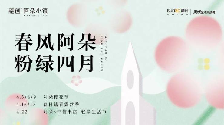 「春风阿朵·粉绿四月」即将元气开启,我们期待和朵民们一起,赏樱、踏青、露营、体验低碳手作、加入中信读书会...感受小镇春日限定的温暖。